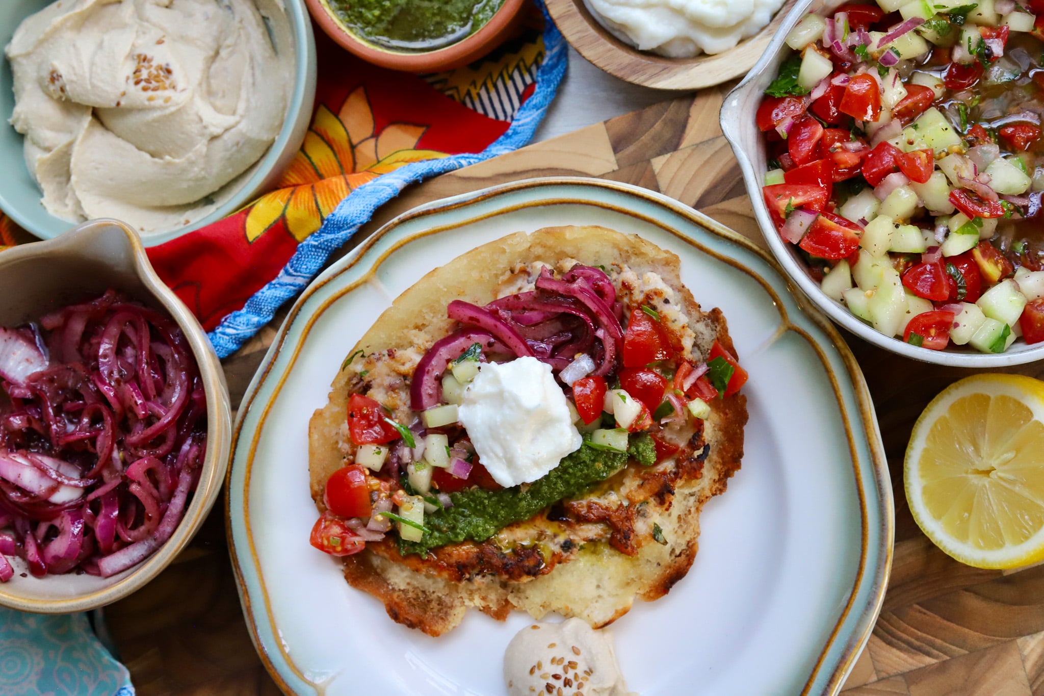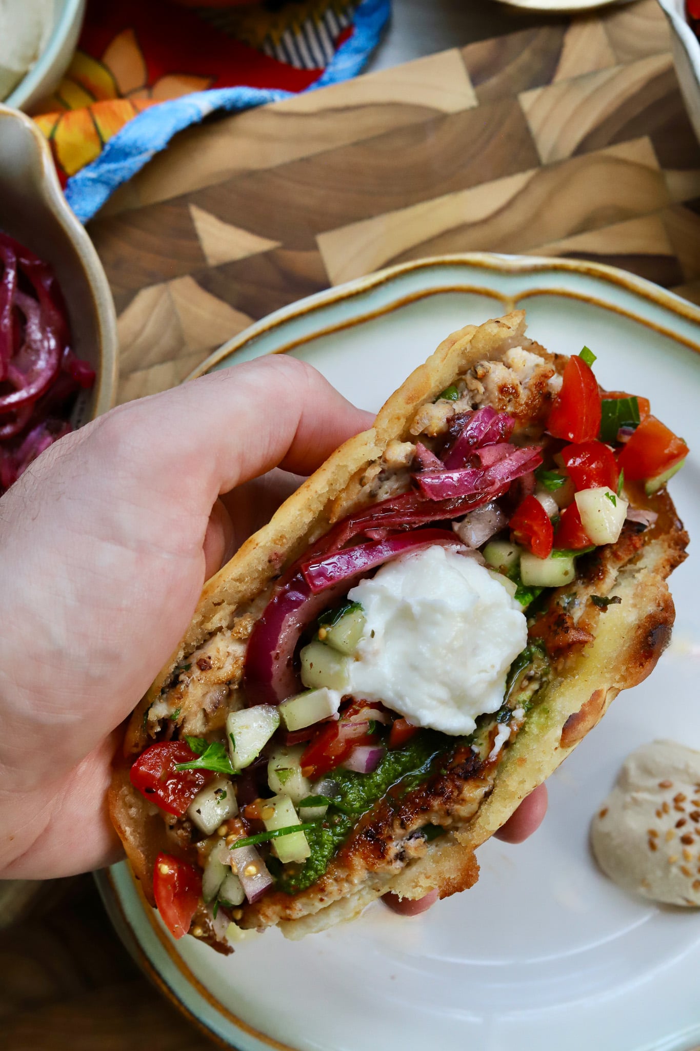I recently visited my friend, Chef Shai Fargian, at his restaurant YAFO Kitchen. Popularly known for their hummus bowls, rotisserie chicken, and angel pita (just to name a few), I was extremely excited to try one of their newest creations: Musakhan Chicken Pita Tacos. I absolutely loved every morsel of this dish, so I immediately knew I wanted to make a spin-off at home. Click here to watch our reel at YAFO Kitchen.