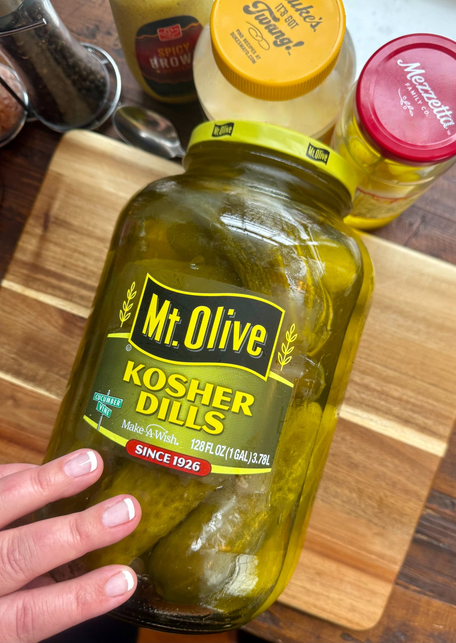 PICKLES: As one of the most important ingredients in this recipe, you know you want to go with the best. That’s why we always grab these jumbo Kosher Dills from Mt. Olive.